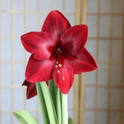 Red Pearl is richer and darker in color than any other amaryllis. Its broad, velvety petals are deep crimson, overlaid with burgundy and maroon. Glittering golden stamens complete the picture. Regal in color and impressive in size, with enormous flowers that often measure 7-8″ across. Each bulb will give you 3 stems with 4 to 5 flowers per stem.