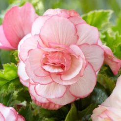 Cool and classy on even the hottest summer day, these tuberous begonias have a timeless appeal. Each fresh white petal is delicately outlined in bright pink. Plant Picotee White in pots to light up a shady porch, deck or patio, or nestle them into the garden with caladiums, impatiens and other shade lovers.