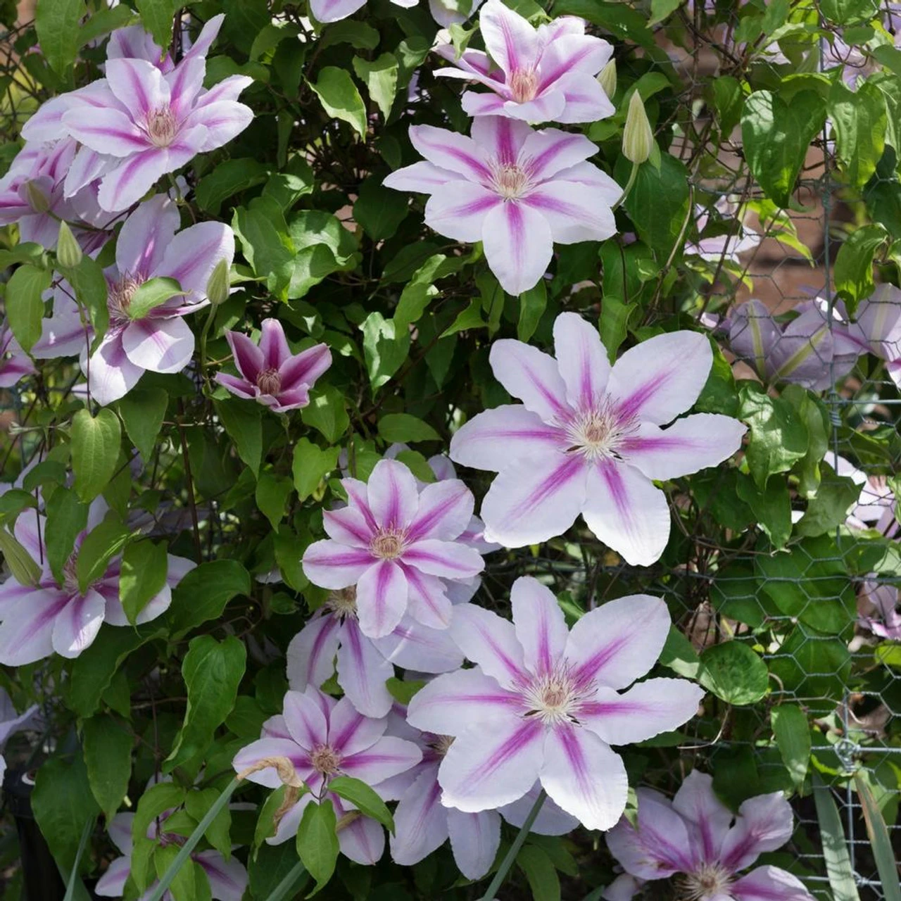 This heirloom clematis has been popular since 1897 and it’s no surprise when you see how beautifully and reliably it blooms. Nelly Moser’s extra-large flowers feature a distinctive two-tone color combination of mauve and hot pink. Blooms time is early summer and again in fall. Makes a nice cut flower, too!
