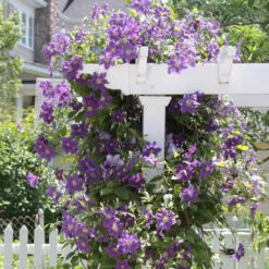 A vigorous, large-flowered clematis with lovely periwinkle blue blossoms that measure up to 7″ across. Ramona is a tried and true performer that’s been consistently popular since the 1800s. It flowers in early summer and often blooms again in early fall.