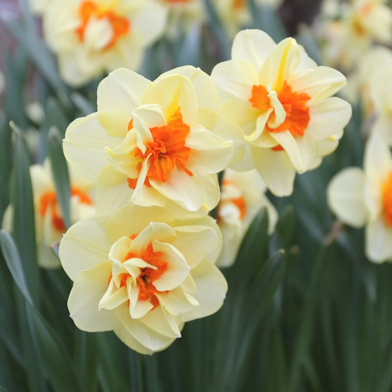 One of the sturdiest and most reliable of all double daffodils. Produces a bounty of bright yellow blossoms, accented with red-orange ruffles. Long-lasting, heat-resistant flowers on sturdy stems.