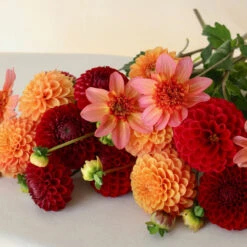 Gallery dahlias feature full size, 5″ flowers on compact plants. Singer’s brilliant, fire engine red blossoms are produced by the dozens from mid-summer through fall. A perfect choice for lining a front walkway or filling containers on your deck.