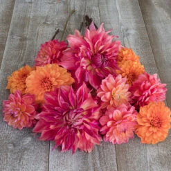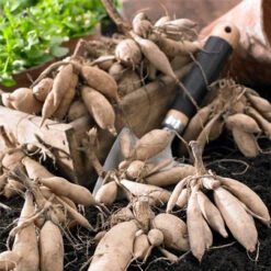 This beautiful new dahlia will bring a warm, sunny glow to your garden. Its big 6″ flowers have golden yellow petals and a butterscotch center. Dark stems, attractive, fern-like foliage and a compact habit make this dahlia an excellent choice for perennial gardens.