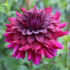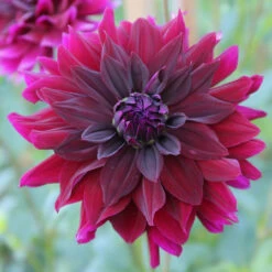 British dahlia enthusiast Sarah Raven calls Rip City her favorite dark-hued dahlia. Bred in the US, it’s a strong grower, with 5 to 6″ blossoms on long stems. The velvety flowers are almost black in the center, softening to maroon and wine-red at the outer edges. A breathtaking cut flower.