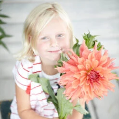 This dahlia is a blend of warm, sunset hues that run from apricot and coral to raspberry and rose pink. Loosely rolled and twisting petals give the impressive, 8 to 9″ flowers extra texture and movement. Tall plants with attractive, dark stems.