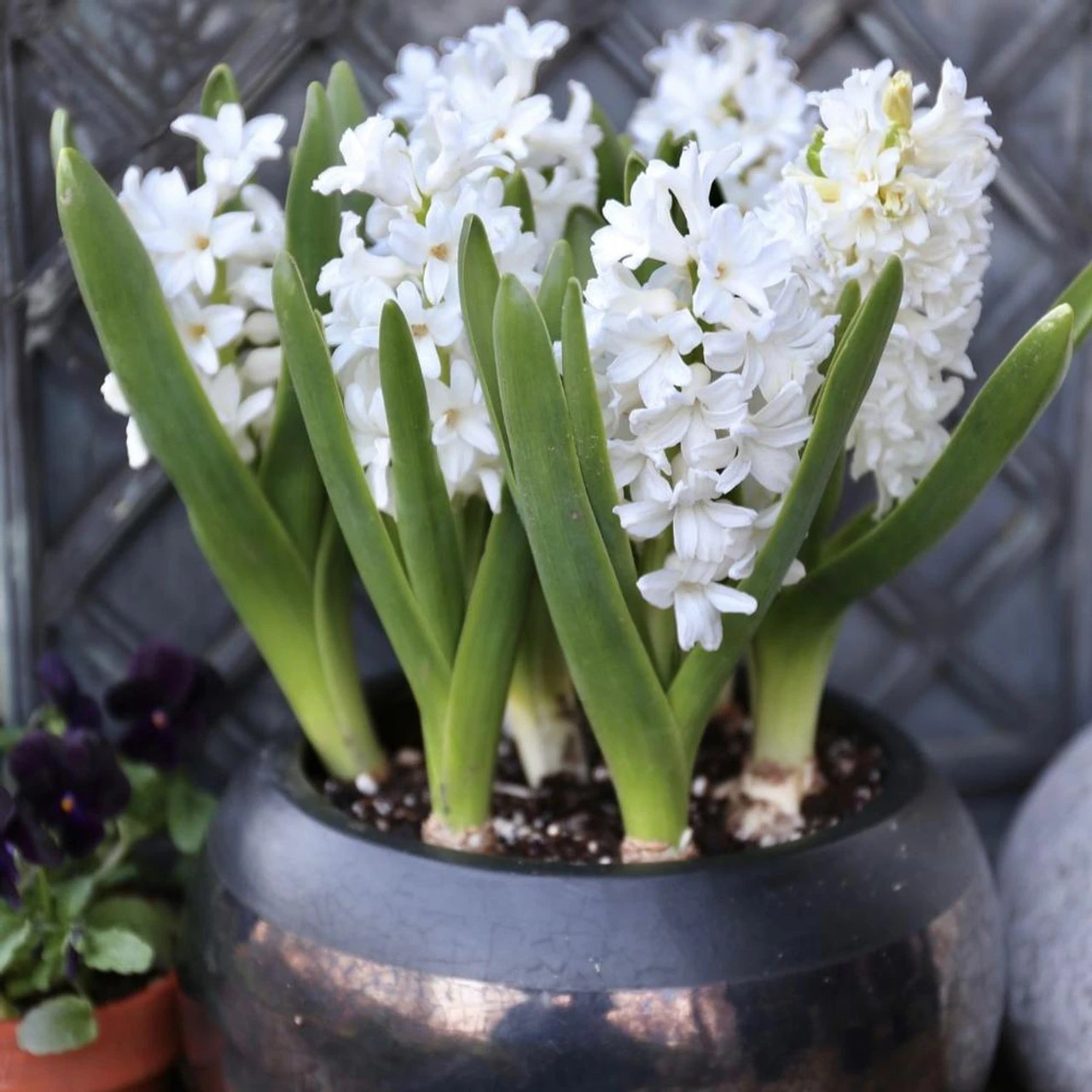 Dense columns of waxy, pure white florets give this hyacinth a beautiful presence in the garden. A new introduction from Holland, it features all the best characteristics of modern hyacinths: sturdier stems, an intense, sweet fragrance and clear, bright colors. Aiolos grows well in containers and is a long-lasting cut flower.