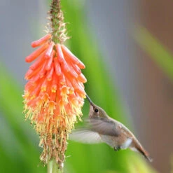 This striking perennial is also known as Red Hot Poker or Torch Lily. Its bright, red-orange flowers add vibrant color and interesting structure to late summer gardens. Grassy foliage blends easily with other perennials. For best results, plant kniphofia in well drained soil in an open, sunny location.
