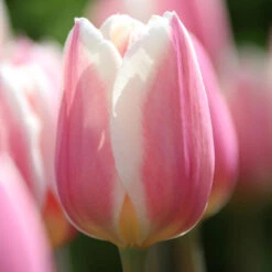 An outstanding new tulip with thick, ivory petals that are brushed with rose, pale pink and peach. The foliage displays an attractive purple variegation on the inner leaves. Apricot Delight is part of a new family of Darwin Hybrids that have long-lasting, extra large flowers on strong, weatherproof stems. Makes a gorgeous cut flower.