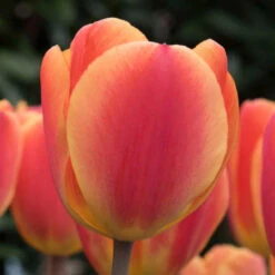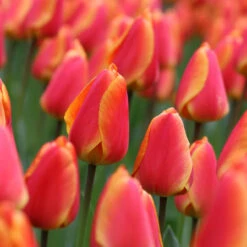 All the best tulip colors in one flower. Oxford Elite’s large and well-shaped flowers have tomato red petals suffused with rose, golden yellow and orange. Beautiful on their own and great mixers with other spring bulbs.